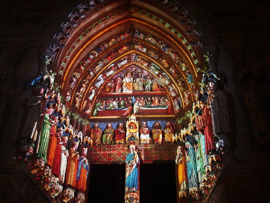 On imagine souvent l’époque médiévale avec des édifices religieux sans couleurs ou des villages de couleur pierre. Mais il faut savoir qu’au Moyen Âge, presque tout était peint ! Et souvent repeint, car chaque époque appliquait les couleurs à sa manière. La polychromie omniprésente de cette période est souvent une réalité difficile à admettre pour plusieurs, car de nos jours, toutes ces couleurs ont depuis longtemps disparu.