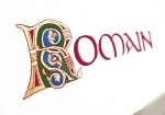 Réalisation d’une lettre enluminée et pose de la feuille d’or sur papier.