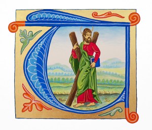 Adaptation du manuscrit St-Andrew avec sa croix. Période gothique.